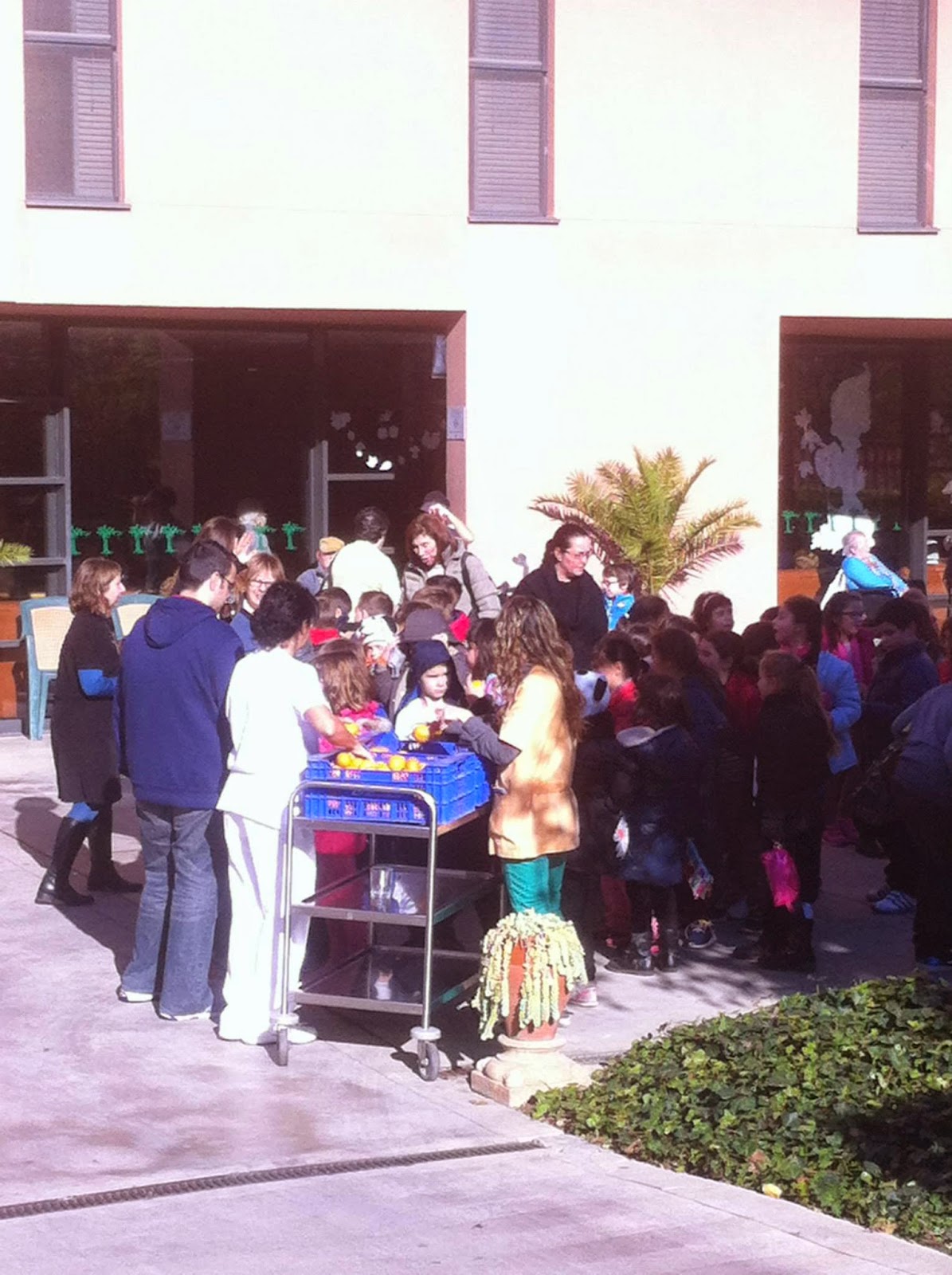 Aprenem junts sobre les verdures que hem de plantar a l'hivern: espinacs, bledes, pèsols, faves, alls,.. i cantem junts les nadales que sabem. I coma agraïment unes delicioses mandarines plenes de vitamines.